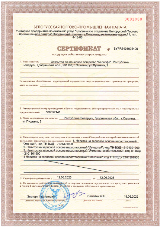 © ОАО «Белкофе» 2025